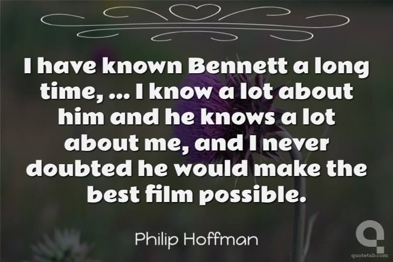 I have known Bennett a long time, ... I know a lot about him and he knows a lot about me, and I never doubted he would make the best film possible. Philip Hoffman