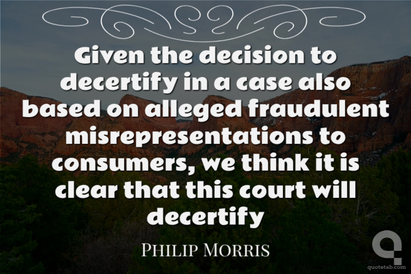 Given the decision to decertify in a case also based on alleged fraudulent misrepresentations to consumers, we think it is clear that this court will decertify Philip Morris