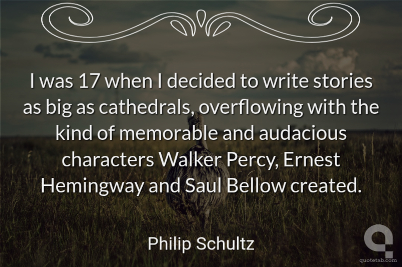 I was 17 when I decided to write stories as big as cathedrals, overflowing with the kind of memorable and audacious characters Walker Percy, Ernest Hemingway and Saul Bellow created. Philip Schultz