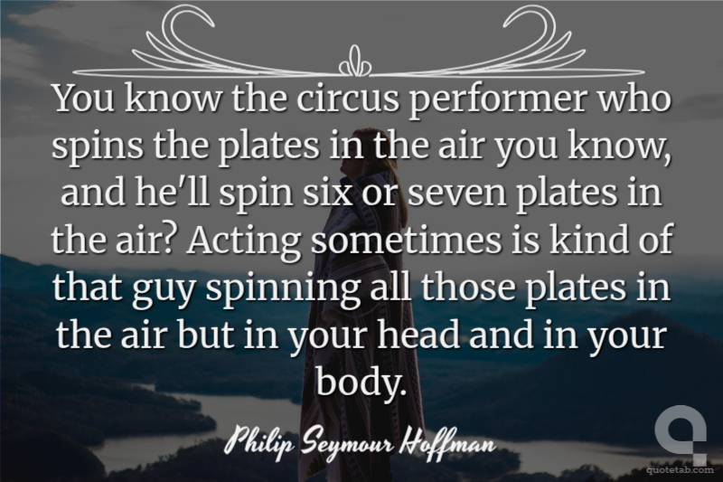 You know the circus performer who spins the plates in the air you know, and he'll spin six or seven plates in the air? Acting sometimes is kind of that guy spinning all those plates in the air but in your head and in your body. Philip Seymour Hoffman
