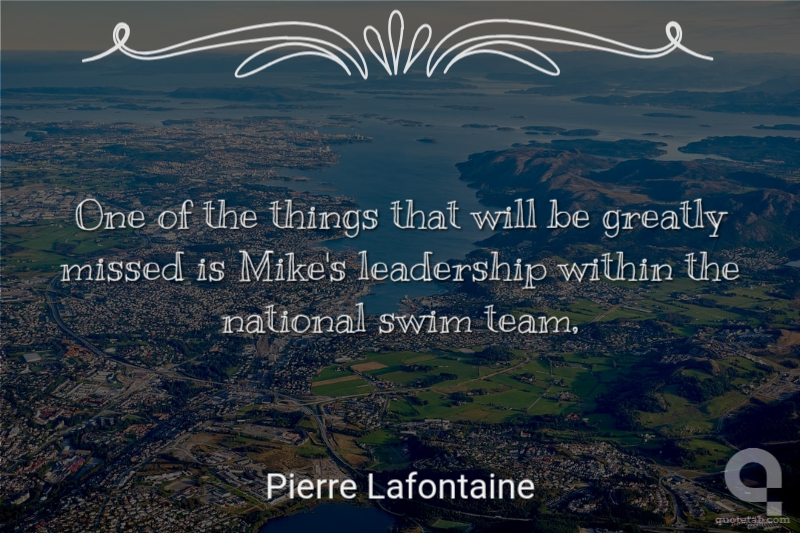 One of the things that will be greatly missed is Mike's leadership within the national swim team, Pierre Lafontaine