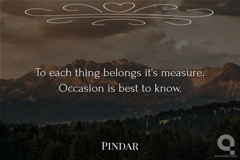 To each thing belongs it's measure. Occasion is best to know. Pindar