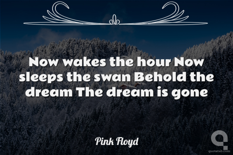 Now wakes the hour Now sleeps the swan Behold the dream The dream is gone Pink Floyd