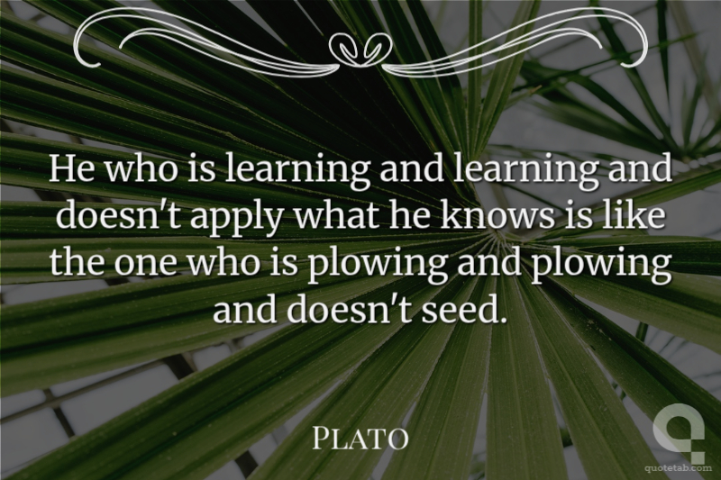 He who is learning and learning and doesn't apply what he knows is like the one who is plowing and plowing and doesn't seed. Plato