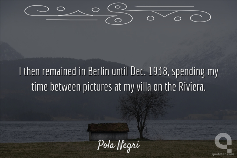 I then remained in Berlin until Dec. 1938, spending my time between pictures at my villa on the Riviera. Pola Negri