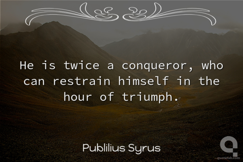 He is twice a conqueror, who can restrain himself in the hour of triumph. Publilius Syrus