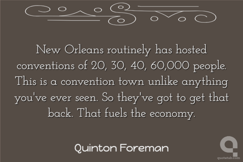 New Orleans routinely has hosted conventions of 20, 30, 40, 60,000 people. This is a convention town unlike anything you've ever seen. So they've got to get that back. That fuels the economy. Quinton Foreman