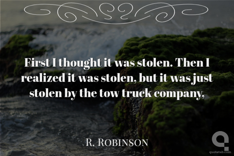 First I thought it was stolen. Then I realized it was stolen, but it was just stolen by the tow truck company, R. Robinson