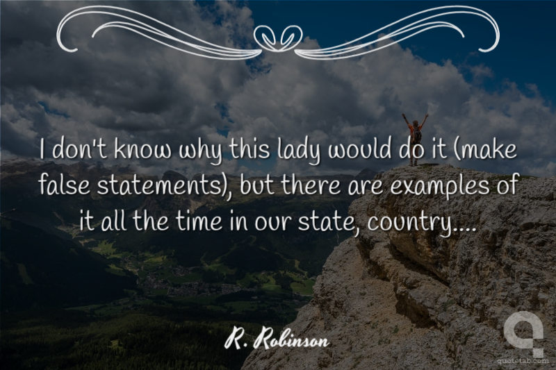 I don't know why this lady would do it (make false statements), but there are examples of it all the time in our state, country.... R. Robinson