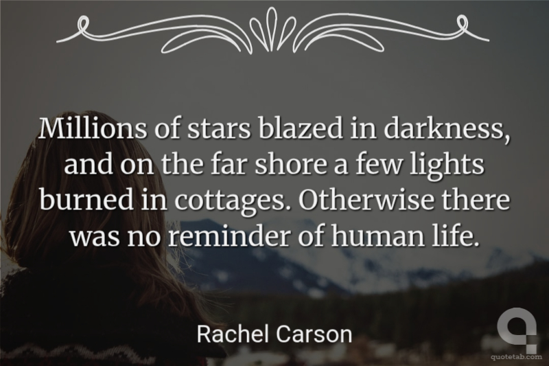 Millions of stars blazed in darkness, and on the far shore a few lights burned in cottages. Otherwise there was no reminder of human life. Rachel Carson