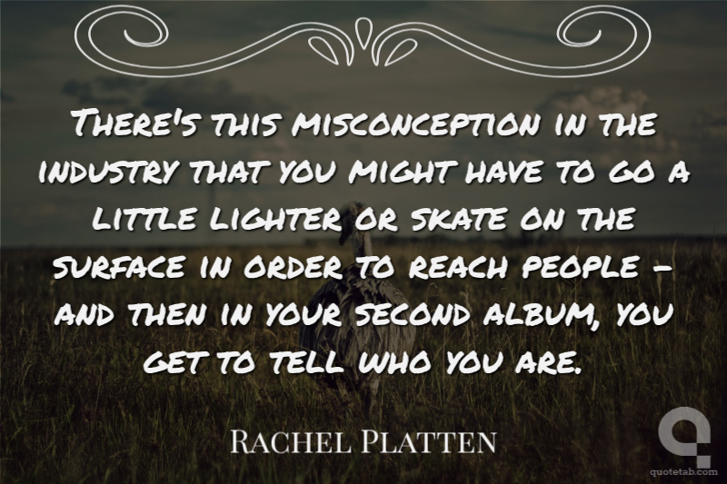 There's this misconception in the industry that you might have to go a little lighter or skate on the surface in order to reach people - and then in your second album, you get to tell who you are. Rachel Platten