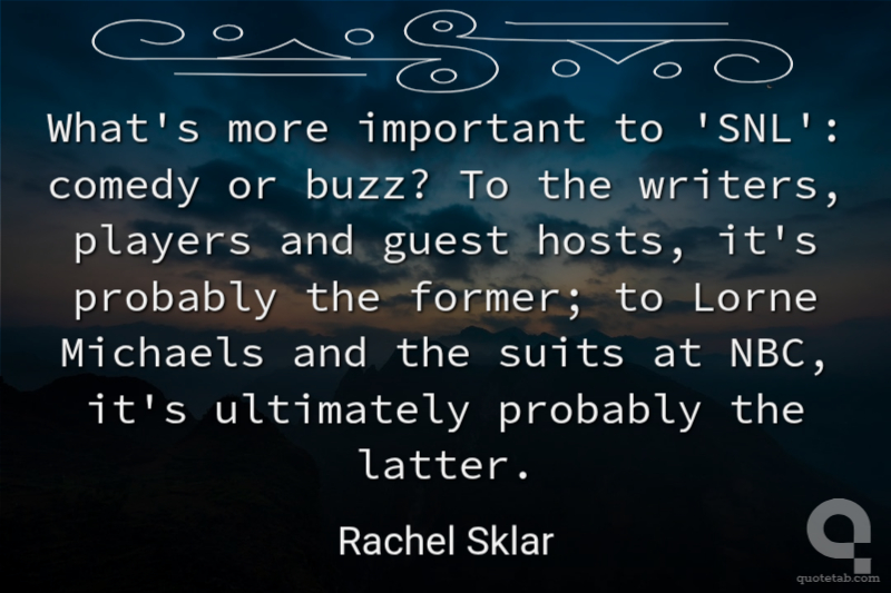 What's more important to 'SNL': comedy or buzz? To the writers, players and guest hosts, it's probably the former; to Lorne Michaels and the suits at NBC, it's ultimately probably the latter. Rachel Sklar