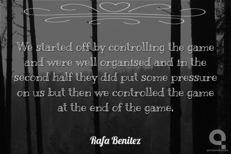 We started off by controlling the game and were well organised and in the second half they did put some pressure on us but then we controlled the game at the end of the game, Rafa Benitez