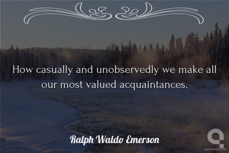 Ralph Waldo Emerson How casually and unobservedly we make all our most valued acquaintances.