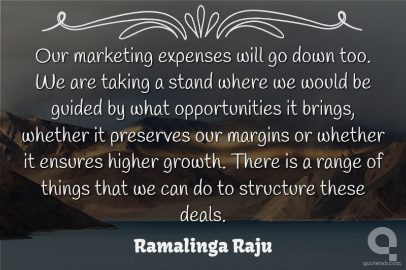 Our marketing expenses will go down too. We are taking a stand where we would be guided by what opportunities it brings, whether it preserves our margins or whether it ensures higher growth. There is a range of things that we can do to structure these deals. Ramalinga Raju