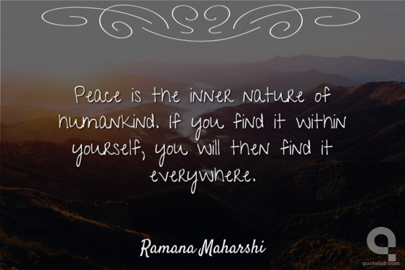 Peace is the inner nature of humankind. If you find it within yourself, you will then find it everywhere. Ramana Maharshi