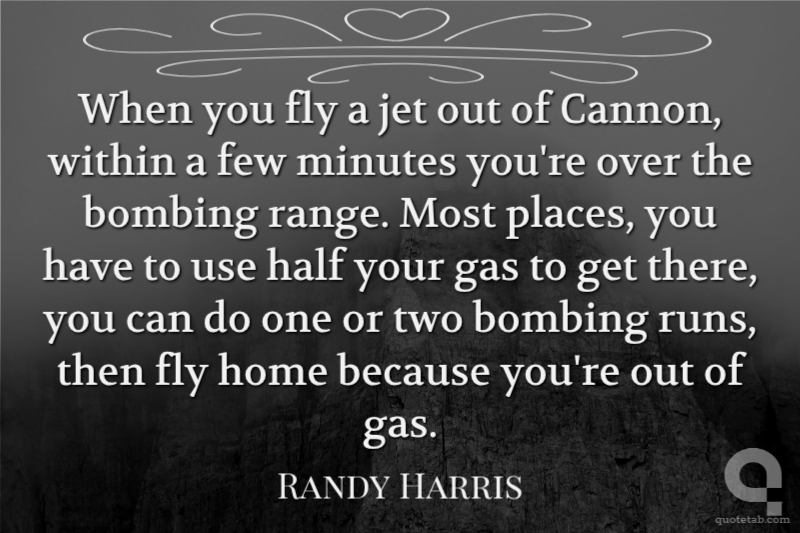 When you fly a jet out of Cannon, within a few minutes you're over the bombing range. Most places, you have to use half your gas to get there, you can do one or two bombing runs, then fly home because you're out of gas. Randy Harris