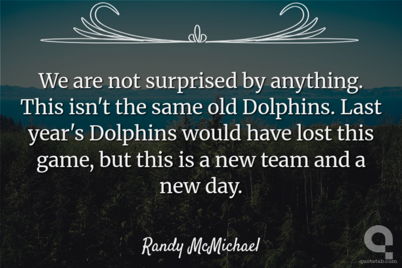 We are not surprised by anything. This isn't the same old Dolphins. Last year's Dolphins would have lost this game, but this is a new team and a new day. Randy McMichael