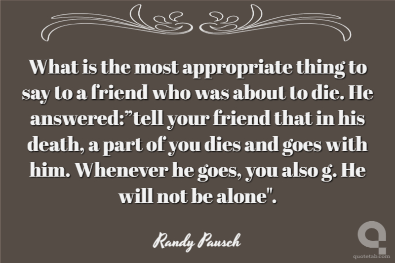 What is the most appropriate thing to say to a friend who was about to die. He answered:”tell your friend that in his death, a part of you dies and goes with him. Whenever he goes, you also g. He will not be alone".