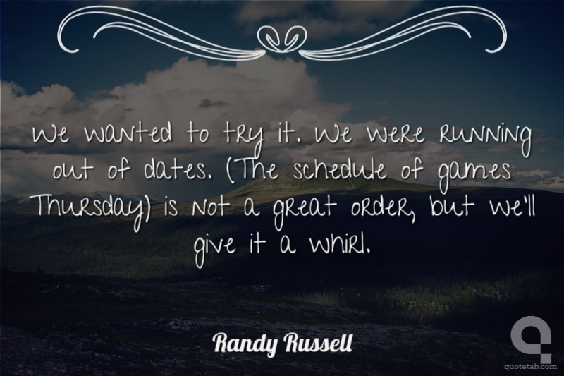 We wanted to try it. We were running out of dates. (The schedule of games Thursday) is not a great order, but we'll give it a whirl. Randy Russell