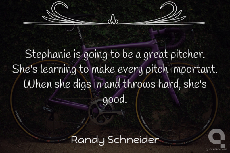 Stephanie is going to be a great pitcher. She's learning to make every pitch important. When she digs in and throws hard, she's good. Randy Schneider