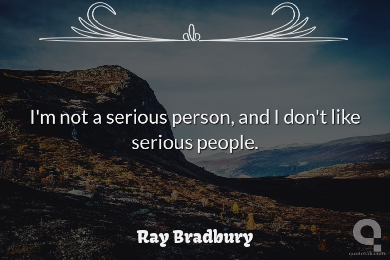 I'm not a serious person, and I don't like serious people. Ray Bradbury