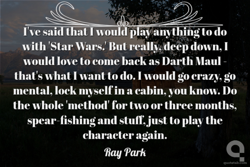 I've said that I would play anything to do with 'Star Wars.' But really, deep down, I would love to come back as Darth Maul - that's what I want to do. I would go crazy, go mental, lock myself in a cabin, you know. Do the whole 'method' for two or three months, spear-fishing and stuff, just to play the character again. Ray Park