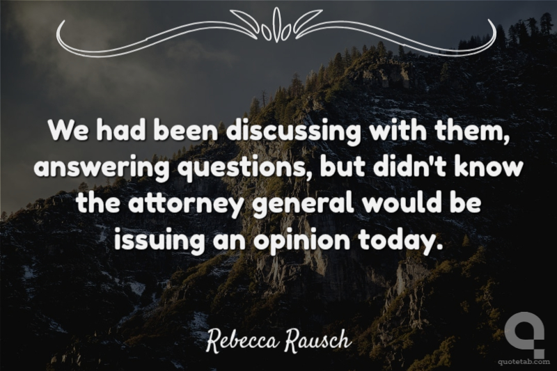 We had been discussing with them, answering questions, but didn't know the attorney general would be issuing an opinion today. Rebecca Rausch