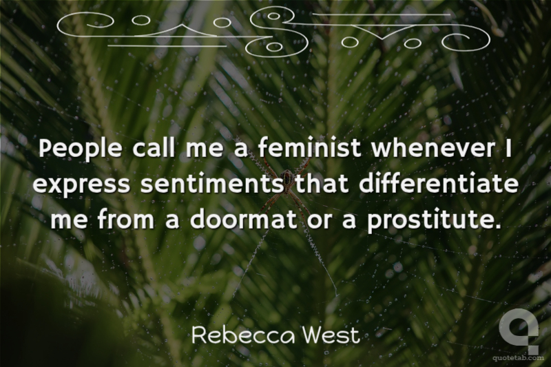 People call me a feminist whenever I express sentiments that differentiate me from a doormat or a prostitute. Rebecca West