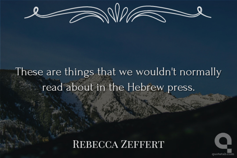 These are things that we wouldn't normally read about in the Hebrew press. Rebecca Zeffert