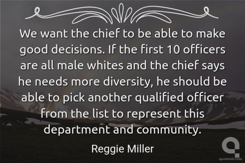 We want the chief to be able to make good decisions. If the first 10 officers are all male whites and the chief says he needs more diversity, he should be able to pick another qualified officer from the list to represent this department and community. Reggie Miller