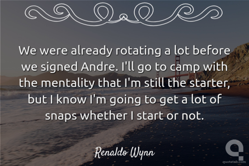 We were already rotating a lot before we signed Andre. I'll go to camp with the mentality that I'm still the starter, but I know I'm going to get a lot of snaps whether I start or not. Renaldo Wynn