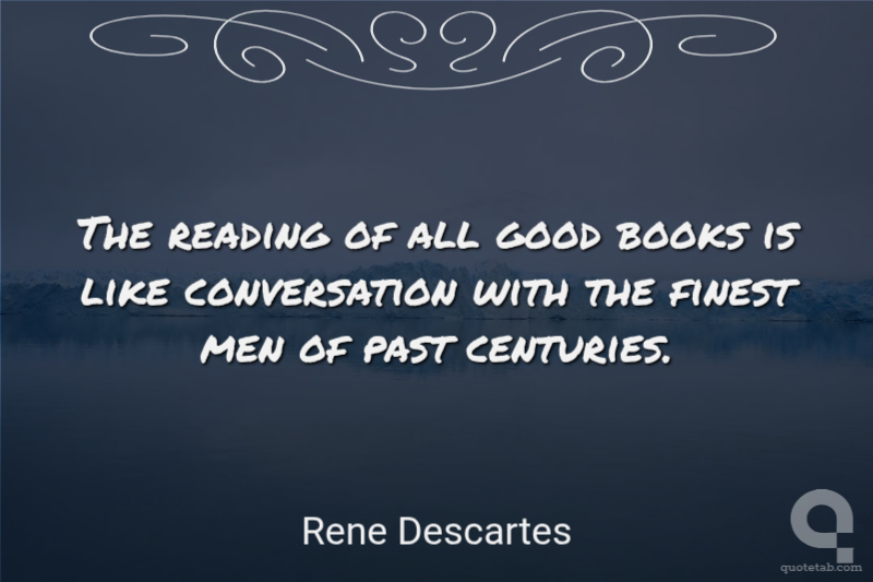 The reading of all good books is like conversation with the finest men of past centuries. Rene Descartes
