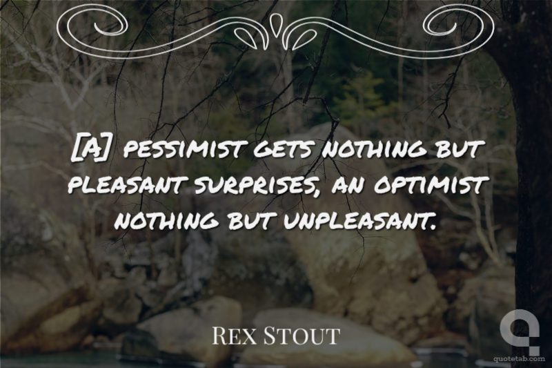 [A] pessimist gets nothing but pleasant surprises, an optimist nothing but unpleasant. Rex Stout