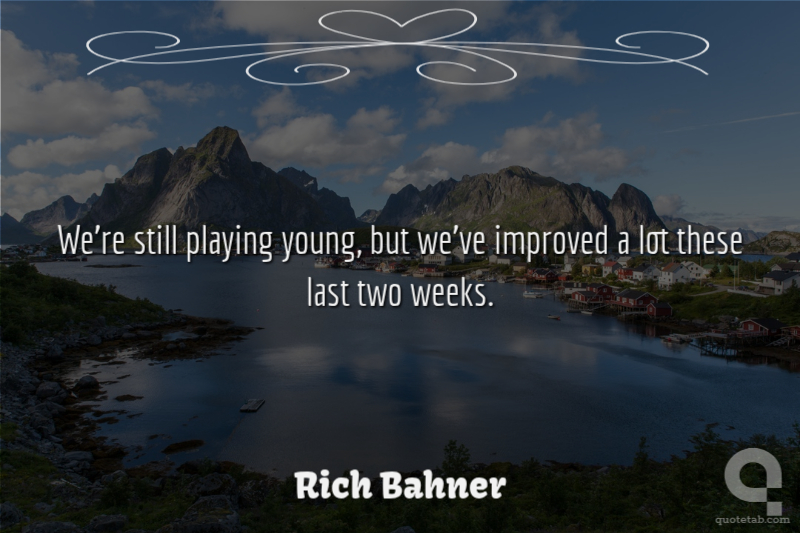 We're still playing young, but we've improved a lot these last two weeks. Rich Bahner