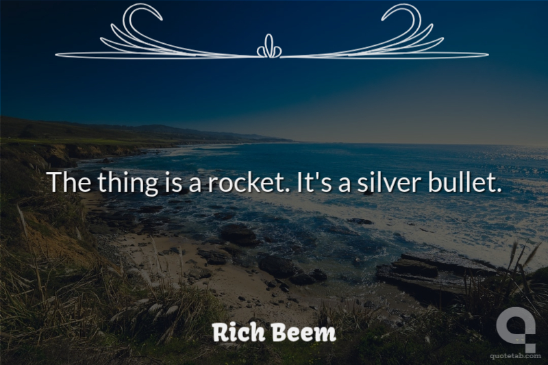 The thing is a rocket. It's a silver bullet. Rich Beem