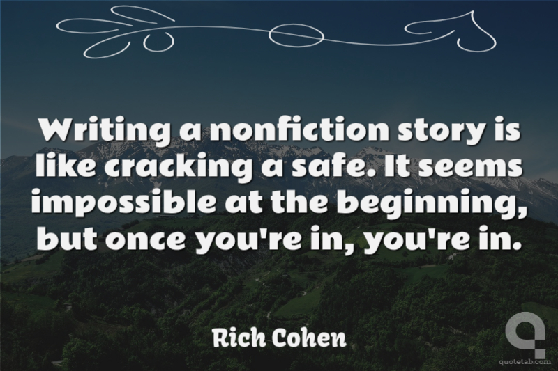 Writing a nonfiction story is like cracking a safe. It seems impossible at the beginning, but once you're in, you're in. Rich Cohen