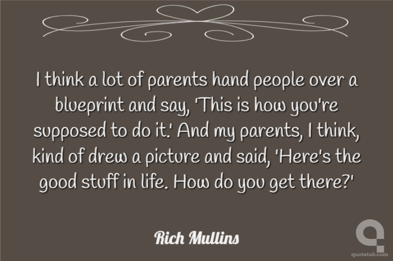 I think a lot of parents hand people over a blueprint and say, 'This is how you're supposed to do it.' And my parents, I think, kind of drew a picture and said, 'Here's the good stuff in life. How do you get there?' Rich Mullins