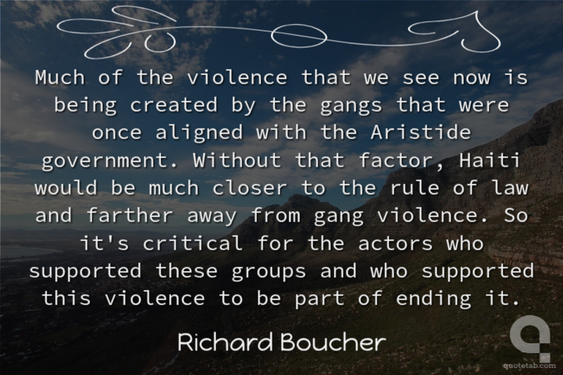 Much of the violence that we see now is being created by the gangs that were once aligned with the Aristide government. Without that factor, Haiti would be much closer to the rule of law and farther away from gang violence. So it's critical for the actors who supported these groups and who supported this violence to be part of ending it. Richard Boucher