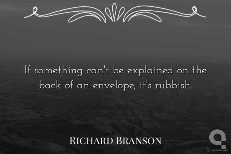 If something can't be explained on the back of an envelope, it's rubbish. Richard Branson