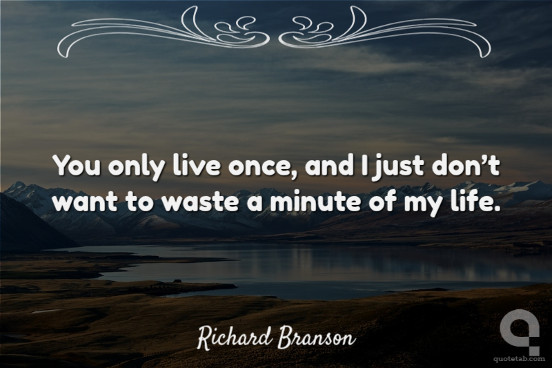 You only live once, and I just don’t want to waste a minute of my life. Richard Branson