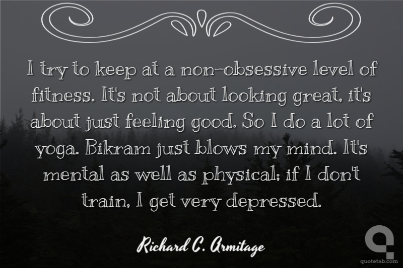I try to keep at a non-obsessive level of fitness. It's not about looking great, it's about just feeling good. So I do a lot of yoga. Bikram just blows my mind. It's mental as well as physical; if I don't train, I get very depressed. Richard C. Armitage