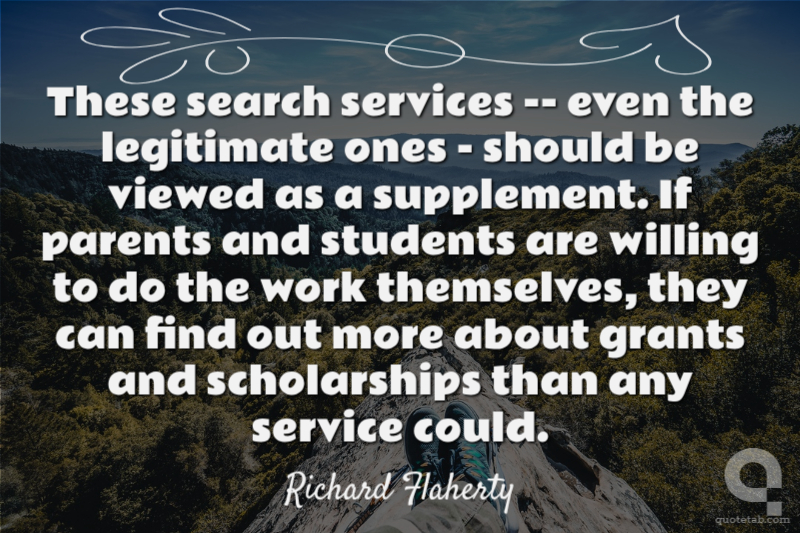 These search services -- even the legitimate ones - should be viewed as a supplement. If parents and students are willing to do the work themselves, they can find out more about grants and scholarships than any service could. Richard Flaherty