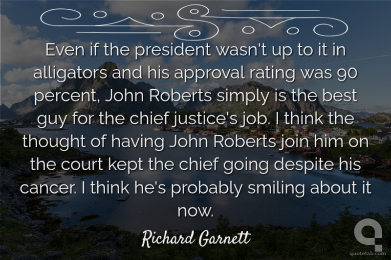 Even if the president wasn't up to it in alligators and his approval rating was 90 percent, John Roberts simply is the best guy for the chief justice's job. I think the thought of having John Roberts join him on the court kept the chief going despite his cancer. I think he's probably smiling about it now. Richard Garnett