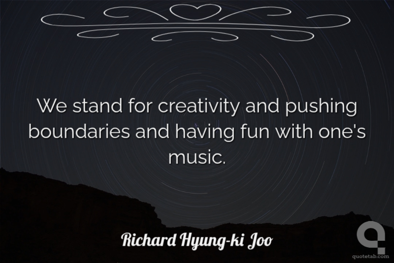 We stand for creativity and pushing boundaries and having fun with one's music. Richard Hyung-ki Joo