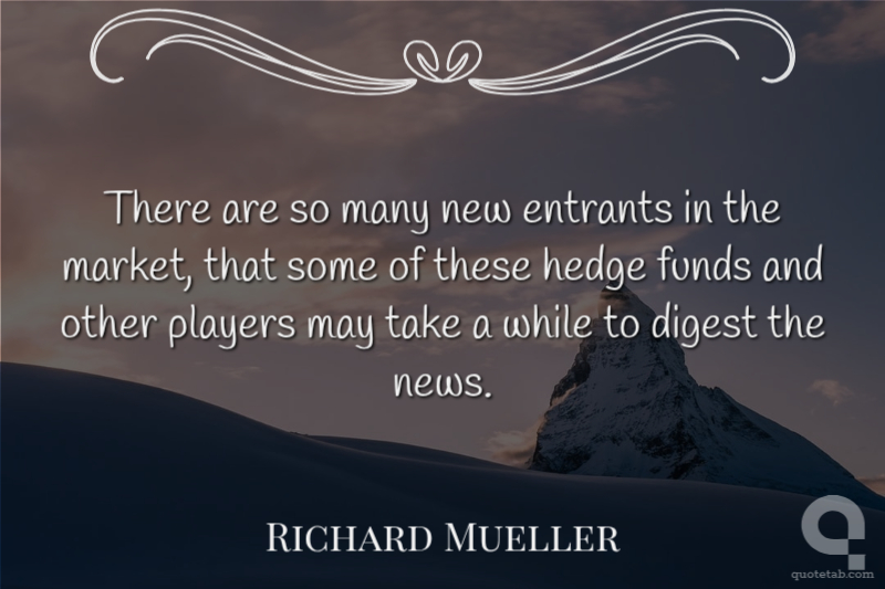 There are so many new entrants in the market, that some of these hedge funds and other players may take a while to digest the news. Richard Mueller
