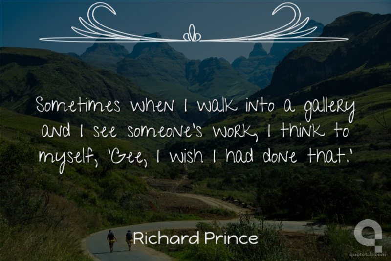 Sometimes when I walk into a gallery and I see someone's work, I think to myself, 'Gee, I wish I had done that.' Richard Prince