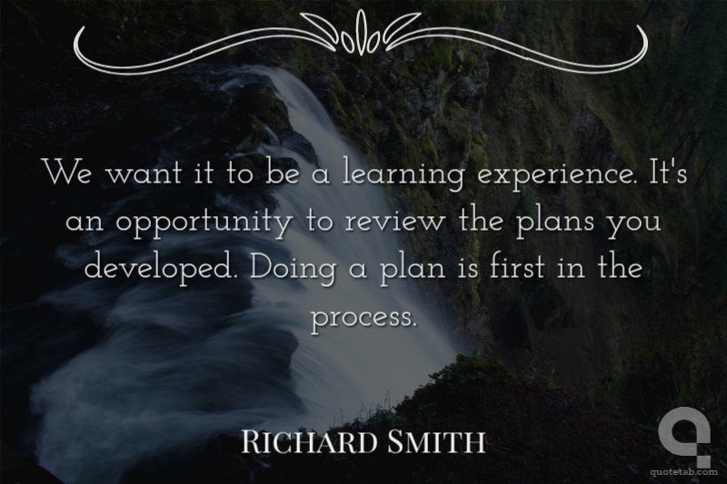 We want it to be a learning experience. It's an opportunity to review the plans you developed. Doing a plan is first in the process. Richard Smith