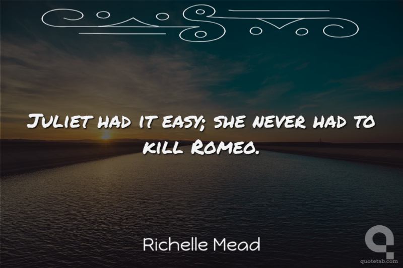 Juliet had it easy; she never had to kill Romeo. Richelle Mead