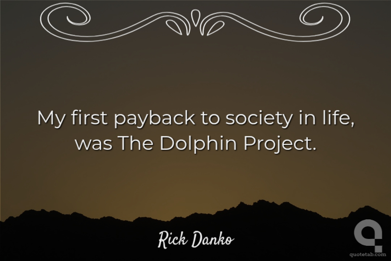 My first payback to society in life, was The Dolphin Project. Rick Danko